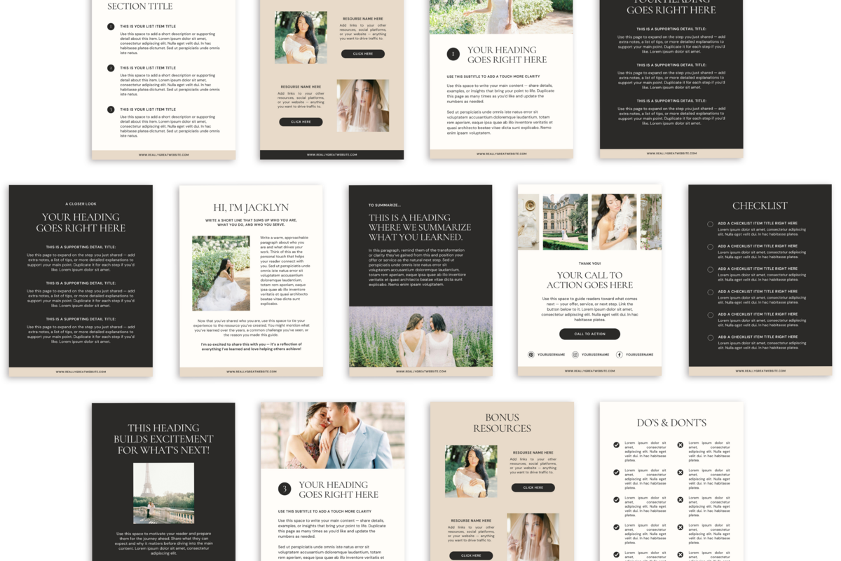 • Flexible Layouts — Mix and match sections to build your own guide, checklist, or list-style freebie